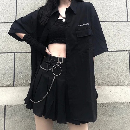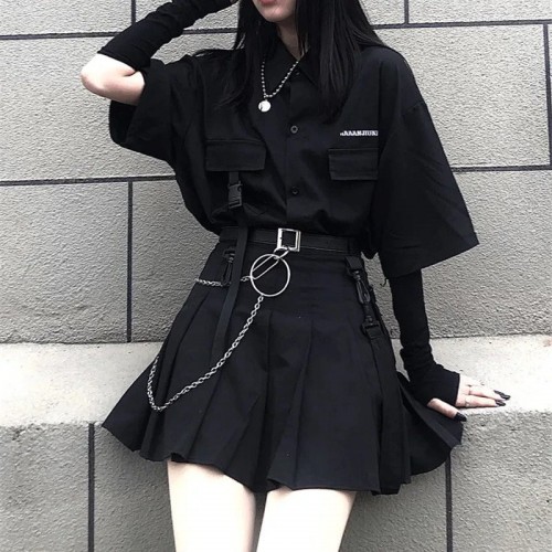 Part of our Dark Playlist, let your grunge side shine! Model this Aesthetic Grunge Mini-dress w..