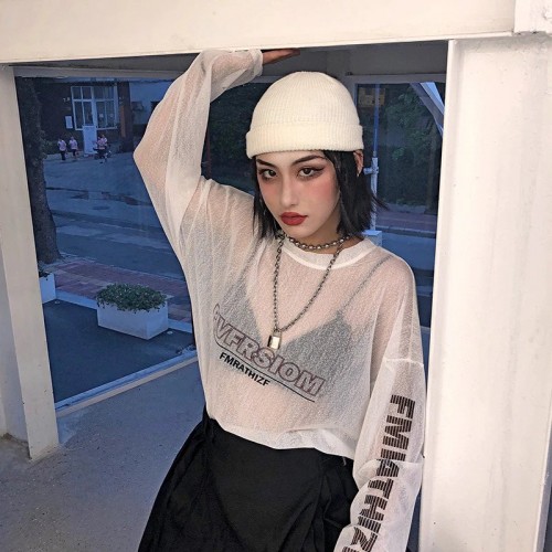 Part of our Dark Playlist, let your grunge side shine! Model this transparent t-shirt with your best pair of jeans.